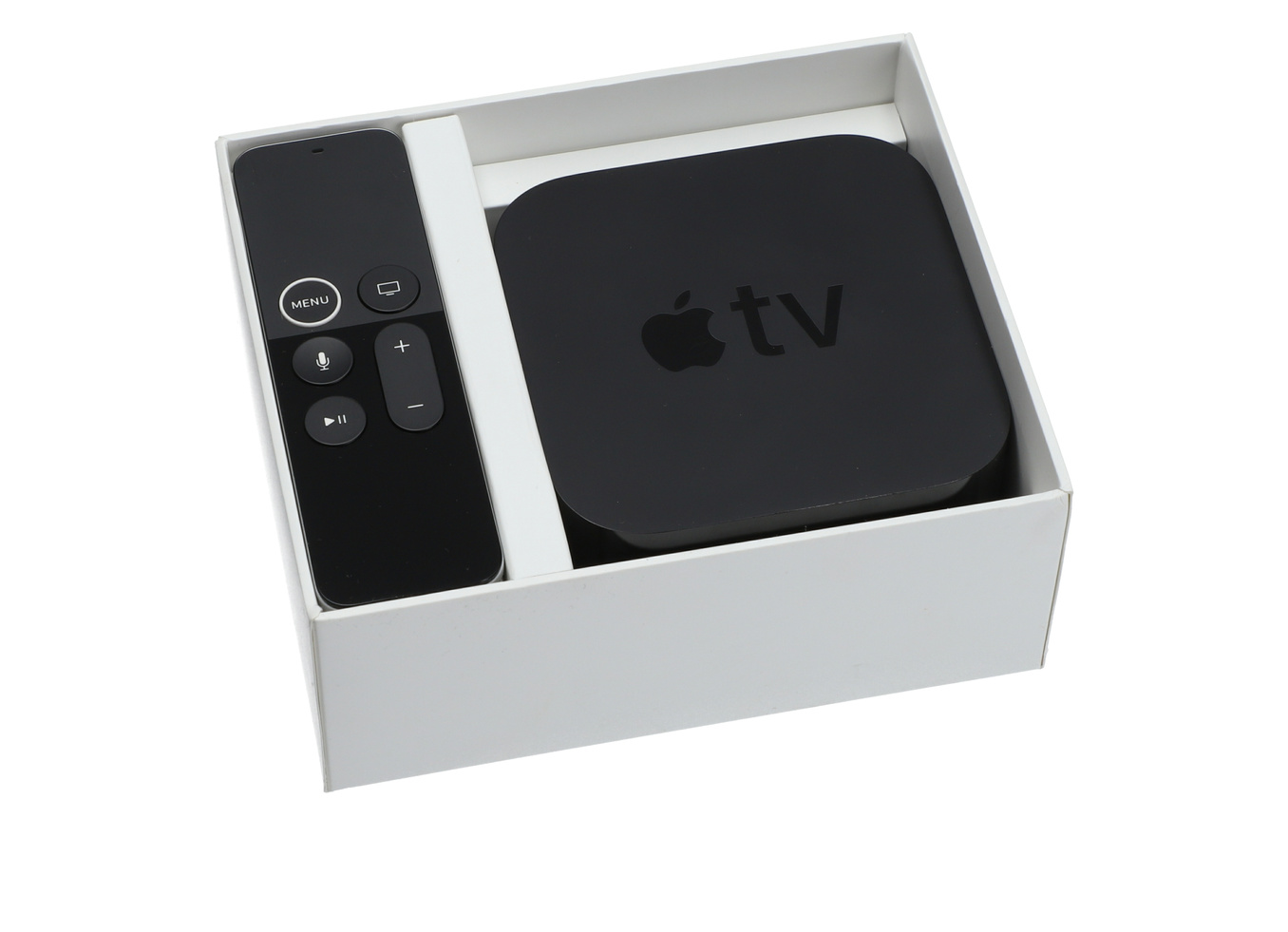 W zestawie otrzymujesz pilot Apple A1962, który pozwala na komfortowe zarządzanie treściami - zarówno przez dotykową powierzchnię, jak i klasyczne przyciski. Pilot komunikuje się z urządzeniem przez Bluetooth, a dodatkowo zawiera nadajnik podczerwieni, dzięki czemu może współpracować z telewizorem. Akumulator w pilocie wystarcza na długie miesiące pracy bez ładowania, a ładowanie odbywa się przez standardowy port Lightning.